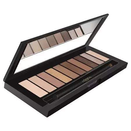首先,用这盘棕色调的裸妆盘用来眼妆打底,然后用这支眼影笔来打造烟熏妆的效果,涂在眼褶处并晕开,使眼神犀利而深邃。