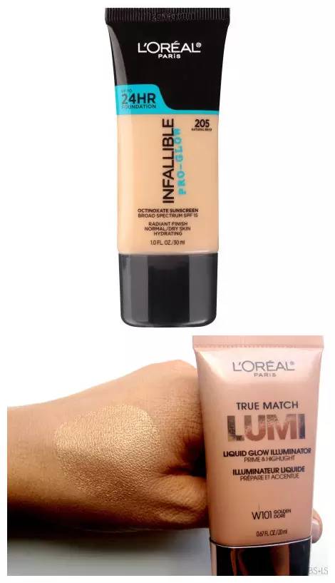 碧昂斯的金色皮肤就是靠这两种底妆品混合而来,一只持久性的粉底加上有金色光泽的提亮乳,就能初步打造雅典娜的金色光泽肌~