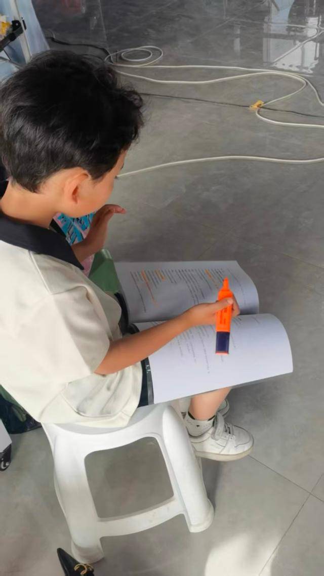 星星也因为拍短剧,已经能认2000多个字。在别的孩子还需要家长陪着读剧本的时候,他已经能自己拿着荧光笔,一行一行地标注台词。