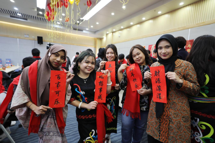 新春佳节即将到来之际,广西建设职业技术学院举办“骐骥驰骋 情暖建院”2026年国际学生新春联欢会。学校相关负责人与各国留学生欢聚一堂,共同感受中国文化年味。